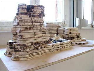 «Légèrement sculptural» est une sculpture. La pièce fonctionne alors en terme de composition et de citation, mais pas de copie. Faire une maquette renvoie évidemment à la reproduction d’un lieu à une échelle réduite, au cinéma, aux plateformes de jeux, aux simulations militaires. Créer un paysage composé renvoie assez directement à la peinture classique, à un décor naturel observé, esquissé, et tellement maitrisé qu’il en devient artificiel. Pour les deux artistes, il s’agit ici de jouer avec ces images, ces références, et désactiver maquette et décor, afin de composer une forme, faire une sculpture. L’imaginaire est déplacé.