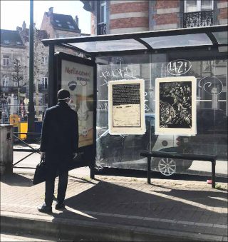 Camille Dufour et Rafaël Klepfisch afficheront leurs gravures sur les murs, les abribus et les gares de Paris, hors des espaces clos des galeries et des musées, à la fois pour contourner les contraintes imposées par le contexte sanitaire et pour renouer avec une forme de communication populaire, susceptible d’atteindre un public étranger au monde de l’art.