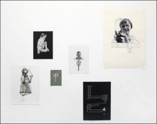 — Eva Kotatkova, Parallel biography, 2011. 6 dessins, collages. 30 x 21 cm, 42 x 29,7 cm, 42 x 29,7 cm, 29,7 x 21 cm, 17 x 12 cm, 62,7 x 45,1 cm
