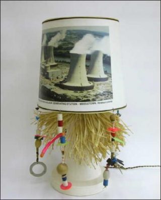 — Lampe Three Mile Island, 1985. Céramique, rafia, objets divers. 76 x 33 x 33 cm. Edition Néotu.