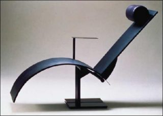 — Martin Szekely, Chaise longue Pi, 1983. Aluminium, acier laqué, mousse, cuir. 96 x 65 x 100 cm. Collection du Musée national d’art moderne, Centre Pompidou. Collection du Musée du design et de la mode-Mude, Lisbonne.