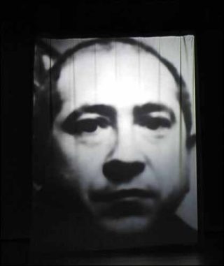 A quelques pas de cette portion d’espace, lui faisant face, sur un écran souple, labile, légèrement en mouvement — un ventilateur posé derrière la surface translucide anime celle-ci de son souffle — l’image du visage de Christian Boltanski se métamorphose avec lenteur. Entre temps, titre de la vidéo projetée, est un long fondu enchaîné des photographies du visage de l’artiste, prises entre sa petite enfance et ses soixante ans. Ce portrait mouvant s’apparente à une photo d’identité diachronique et le noir et blanc de l’image, son flou si particulier, l’ampoule électrique à la lumière blafarde suspendue dans la pièce sont autant d’éléments qui constituent la signature formelle de l’artiste.
