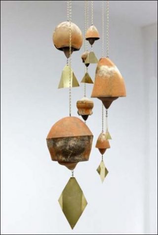 — Aurélien Froment, Paolo Soleri, Incomplete Soleri Windbell, 2011. 7 terra cotta and brass windbells; Variable dimensions