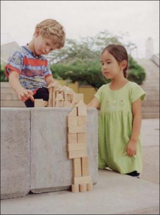 Plus loin, une photographie représentant deux enfants en pleine séance de jeu rend hommage à la postérité des idées de Fröbel.