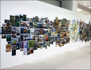 Le Mur des sols (1995-2012) est le fruit d’années de recherches iconographiques durant lesquelles il a rassemblé des cartes postales, des images de presse et des cartes topographiques. Des documents en lien avec les sols du monde, classifiés en plusieurs groupes: engin, travail, guerre, sport, cimetières, sacrés, etc. Mis bout-à -bout, les groupes constituent un ensemble qui mesure aujourd’hui plus de 40 mètres. À Marseille, sont présentés 14 mètres d’images, accrochés de manière à ce que chaque visiteur puisse embrasser tous les visuels. Une accessibilité qui permet une prise en compte individuelle de chaque document par tous. Le Mur des sols est une cartographie évolutive, mentale et concrète qui synthétise les recherches de l’artiste. La mémoire des lieux est bien au coeur de son projet artistique.