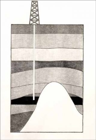 Si la plupart des dessins s’attachent à comprendre les épaisseurs et les richesses qui dorment sous terre (Dislocation du sol, Volcan, Dôme de sel, Piège anticlinal, Piège par faille, Nappe d’épanchement, et Cul de sac), tous partagent avec Iceberg le même souci d’interroger la face cachée.