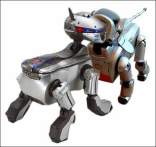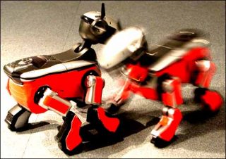 — Fight Club, 2002. Installation performance. Autonomie : 1 h. 2 robots chiens Aïbo. Développement informatique : Stéphane Berrebi.