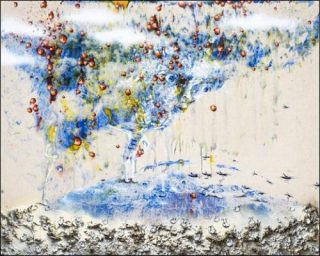 Il n’y a plus d’hommes, ni d’animaux, ni de nature représentés mais des matières vivantes. De l’huile, de l’acrylique, des cires, des laques, de la terre, tout cela comme un trop plein de lave qui proviendrait des tréfonds du corps et du cerveau de l’artiste. Un trop plein qui se déverserait et que les pinceaux, les doigts et toutes une gamme d’outils et d’objets orienteraient pour construire d’énigmatiques narrations pleines de vitalité.