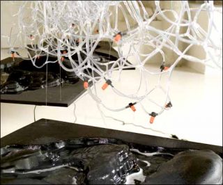 A l’instar d’un dessin, ces sculptures ont une véritable force de simulation et sans dissimulation. Tout est montré : les moteurs, les fils électriques, le tuyau d’aquariophilie, les embouts d’arrosage automatique, le fil de pêche, les bouchons, etc. Et comme chacun sait, quand rien ne nous est caché, tout nous porte à y croire.