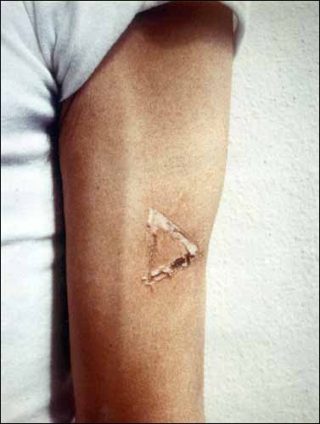 Et quant à la transfiguration promise, il ne s’agit pas d’une métamorphose corporelle révélant, comme dans la tradition chrétienne, la nature divine du christ, mais la fin d’une situation d’exclusion sociale. Ainsi en est-il du Marquage de 1983, dont la forme fait référence à l’odieux triangle rose stigmatisant les homosexuels dans les camps de concentration et qui, réutilisé comme symbole de l’épidémie du sida dans les années 80, devient un moyen de revendication sociale et le signe d’une marginalité assumée pour la communauté gay.
