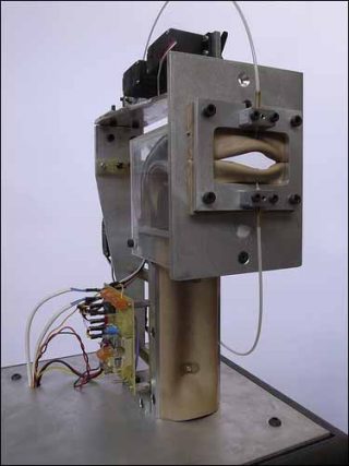 — Injonction 2, 2008. Matériaux divers et servomoteurs, dispositif sonore. 100 x 65 x 26 cm.