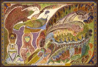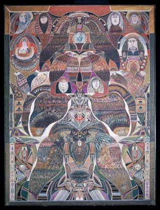 Des figures apparaissent dans les compositions, à partir de 1927. Issues de l’iconographie populaire, de l’imagerie pieuse, des motifs bouddhiques ou égyptiens, l’éclectisme des références empruntées et leur traitement — elles paraissent parfois émanées d’un collage — produit un effet étrange, oscillant entre symbolisme et naïveté et, nous pourrions dire aujourd’hui, entre kitsch et post-modernité.