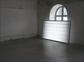 Postées dans l’encadrement des ouvertures, aux extrémités opposées de l’espace, deux jeunes femmes se concentrent chacune dans l’exécution d’un geste précis et continu orchestré par Adélaïde Feriot. Au sol, un ultime « inventaire » de matériaux d’Héléna Bertaud, superpose les strates d’une topographie instable. Des pans de mousses, de bâches plastique ou encore de tissus, tapissent presque entièrement l’espace dans l’attente de leur inévitable transformation, dès lors que nous pénétrons dans le lieu.