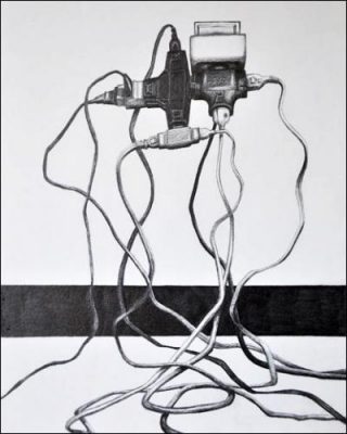 Quant à Alain Lapierre, il entretient une pratique singulière et hybride avec le dessin à travers laquelle il cherche à préciser ce qu’est pour lui la surface (papier ou écran) qui l’accueille. Cet espace «où tout peut s’envisager, se rejouer, se projeter»: du trait le plus lâché à la minutie la plus obsessionnelle. Dessins au trait traditionnel, dessins informatiques, dessins animés. Ré-interprétation permanente du dessin, qui se construit par la juxtaposition de motifs, dans l’accumulation de couches, les saturations, les repentirs … reprises incessantes jusqu’à ce que, parfois, le support marque l’arrêt.