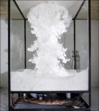 Qu’il modifie l’éclairage d’une pièce en faisant ruisseler de l’huile de moteur le long d’un tube fluorescent (Lumière noire, 2012) ou qu’il fasse tomber une neige noire à la fois douce et inquiétante dans un intérieur bourgeois (Dreamcatcher, 2012, en collaboration avec Quentin Euverte), c’est toujours l’environnement que Thomas Teurlai (né en 1988, vit et travaille à Lyon) cherche à transformer, aussi infime que soit son intervention.