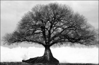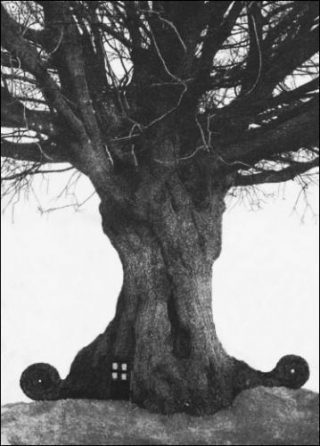 Avant d’accéder à l’espace principal de l’exposition, nous découvrons une longue série de photographies noir et blanc représentant de grands arbres, comme si Patrick Van Caeckenbergh tentait d’élaborer une classification de leur silhouette, tel un taxinomiste. Mais plutôt que de former un véritable arbre généalogique répertoriant les genres et les espèces, ainsi que leurs liens de parenté, cette collection de photos nous renverrait davantage vers «l’arbre de la connaissance» de René Descartes, où les différents savoirs se trouvent classés et hiérarchisés en fonction de leur importance et de leur portée suggérées.