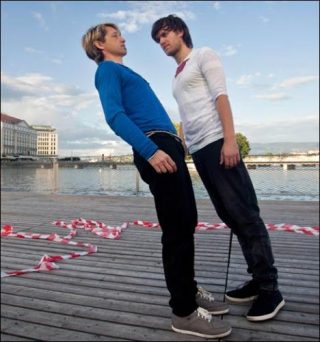 «Ce n’est pas une histoire d’amour» fait référence au tableau de Magritte Ceci n’est pas une pipe. Deux hommes les yeux bandés exécutent des mouvements précis, rythmés par la musique des frappes corporelles, comme un métronome. Caresses et provocation, revendication d’un territoire, une relation duelle imprévisible, donner et recevoir, comme à l’infini. La chorégraphie détermine la musique et le silence oriente la dramaturgie de la pièce. Les performeurs sont dans une tension fascinante. Le vocabulaire sonore se complexifie de variations, de rythmes. Un jeu d’enfants qui envahit peu à peu le public.
