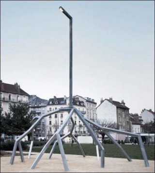 Á l’instar de nombreux projets de Didier Faustino, Les Racines du mal nous pousse à nous interroger sur notre place et notre rôle dans ce monde, à travers notre relation à l’espace construit dans son immédiateté et sa temporalité. Le lampadaire public a été spécifiquement conçu pour la 27ème biennale de São Paulo en 2006 dont la thématique était «Comment vivre ensemble?». Ce titre reprend celui des cours donnés par Roland Barthes au Collège de France, entre 1976 et 1977, où le professeur proposait une réflexion autour de la question initiale «A quelle distance dois-je me tenir des autres pour construire avec eux une sociabilité sans aliénation?». L’œuvre a ensuite été exposée au Centquatre-Paris dans la cour Curial Nord de mai 2009 à avril 2013.
