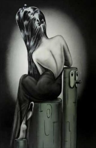 Certains diront que les œuvres d’Hippolyte Hentgen sont pétries de l’atmosphère propre à la peinture métaphysique. Quelques unes de ses toiles contiennent en effet des mannequins animés évoquant ceux de Giorgio di Chirico. Pourtant, le style naïf des figures, la rondeur des formes, l’aspect bon enfant des monstres et le ridicule des situations dépeintes par ce duo d’artistes écartent tout sentiment d’inquiétante étrangeté.
