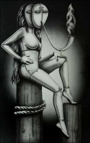 S’il y a mélancolie, celle-ci est moins du côté de l’épreuve des formes que de la réflexion qu’elles suscitent. Car, si les objets et les animaux font l’objet d’une anthropomorphisation, les êtres humains sont en retour privés de leurs visages et de toute subjectivité apparente: le genre humain est soumis à une réification, c’est-à -dire réduit à l’état d’objet. Ici pointe peut-être une critique de la société industrielle et post-industrielle.