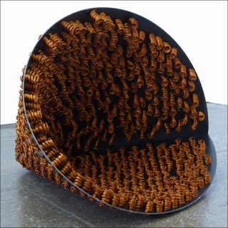 Les sculptures de Vanessa Notley explorent les espaces et instruments qui remplissent la fonction de vestibules entre nous et le monde extérieur. L’œuvre intitulée Les anglaises, est composée d’un cône en acier dans lequel sont piqués des fils de cuivre entortillés de telle façon qu’ils ressemblent, du côté intérieur du cône à des boucles de cheveux, des « anglaises ». Sur la face externe du cône, les fils sont noués et aplatis. Pour la sculpture Hairy Mary, le même type de cône est cette fois garni de fils de cuivre dont les extrémités jaillissent de son côté extérieur, en un tapis de longs poils. Comme les autres sculptures intitulées I wont et Golnâz, ces « vestibules » symbolisent un réceptacle destiné à tamiser les données parvenant de l’extérieur.