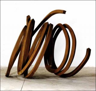 C’est la puissance du geste de l’artiste, la force nécessaire pour ployer ces poutrelles, et de sa victoire finale sur la matière, qui apparaît. Indéterminées, ces lignes le sont aussi sur le plan géométrique, puisqu’elles tendent alternativement vers l’horizontale, la verticale ou l’oblique tout en conservant une morphologie circulaire. C’est précisément ce mouvement concentrique dont elles semblent avoir été animées qui leur donne leur puissance un peu dangereuse.