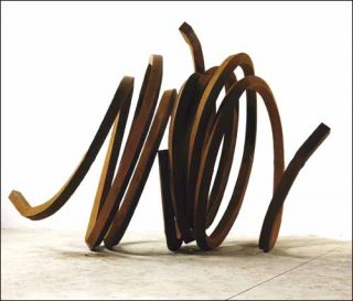 Quand elles sont groupées, solidaires ou mitoyennes, les lignes semblent échouées là comme après un cataclysme qui leur aurait donné leurs formes tortueuses. Sous la main de l’artiste la forme devient difformité, et les lignes recroquevillées, comme traumatisées, s’appuient parfois les unes contre les autres comme pour trouver leur équilibre, confuses et empruntées sur le parquet de la galerie.