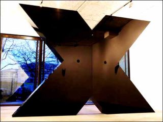 Passage barré, monde interdit : le spectateur rentre par effraction. Une installation de bois et plexiglas noir, en forme de « X » monumental, ouvre et ferme l’espace d’exposition. Elle obstrue l’entrée principale. Violation d’intimité ou transgression : nous pénétrons dans un monde clôturé dont nous sommes rapidement captifs. Enserrés dans l’univers mystérieux tissé par les œuvres, nous restons prisonniers d’une énigme.