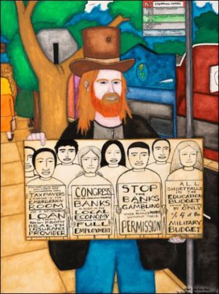 D’apparence naïve, ses dessins portent un regard franc et direct sur l’actualité, et dépeignent des protestations et des mises en scène de la vie politique internationale dans une approche à la fois comique, ironique, et profondément humaine. Les sujets abordés retracent l’activisme de l’artiste pour des causes aussi diverses que la protection de l’environnement, l’injustice sociale ou la lutte contre la corruption.