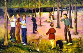 — In The Forest Of Love And Rigomortis, 2007. Huile sur toile. 217 x 341 cm.