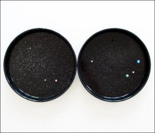 Rada Boukova, avec deux planches et quelques perles de verre, dessine deux planisphères qu’on imagine tournant l’une autour de l’autre, se rapprochant et s’éloignant au gré des mouvements constatés dans un espace de vie. Le goût de produire des instruments de pensées à partir de presque rien, on le retrouve chez Stefan Nikolaev qui avec son clou, a donné à une humble semence, au plus modeste outil, la respectabilité du bronze.