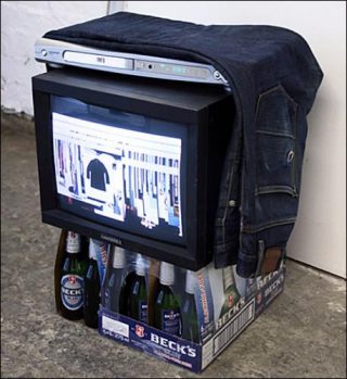 Deux installations interrogent encore ce processus d’oscillation entre une chose et une autre. La première est un ensemble de meubles savamment empilés les uns sur les autres, au sommet desquels se trouve une vidéo faisant défiler des images d’amoncellements similaires rencontrés dans la rue ou sur les marchés. Lorsque la vidéo est en marche, la construction fait figure de socle, le regard se concentre sur les images qui défilent. Lorsque la vidéo s’éteint, le contexte de la galerie se fait plus présent, et l’assemblage devient sculpture.