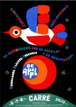 ― L’Histoire du soldat et Le rossignol pour le théâtre De Apple, 1974. Affiche.