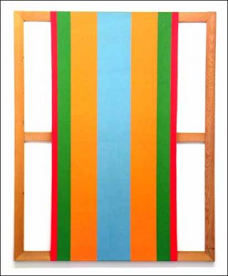 — Toile de bâche à rayures et châssis bois, 1964. Toile de bâche à rayures et châssis bois. 130 x 161 cm.