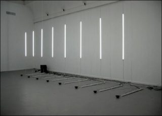 Pour cette nouvelle exposition, intitulée « Licht Klang », c’est un medium devenu banal qui est à l’honneur: la lumière artificielle. Loin des projets excentriques de Herrington et Lightbown qui, en tirant profit de la substance lumineuse exsudée par les harengs à leur mort, pensaient pouvoir éclairer nos villes, la fée électricité et l’ampoule à incandescence remédièrent aux ténèbres. L’usage intensif de l’éclairage artificiel modifia profondément notre vie quotidienne. Pour Marshal McLuhan la lumière artificielle est un médium sans contenu, capable de créer un environnement par sa seule présence.