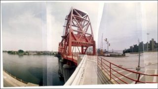 — A panoramic view of the East River, the 36th Ave Bridge, pet Roosevelt Island, N.Y. & Queens, N.Y. 7 juin 1995. 17 x 53 cm