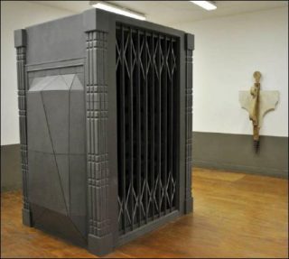 Les éléments réalisés pour l’exposition jouent sur des registres d’échelles et de matières différentes qui accroissent le sentiment d’ambiguïté de leur statut. Les volumes ont une tonalité grave et pesante. Les objets fonctionnent comme des indices et renvoient à une pratique spécifique dont on ignorerait cependant l’exacte destination. Cultivant ainsi une ambivalence entre matériel médical et engins de torture.