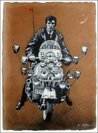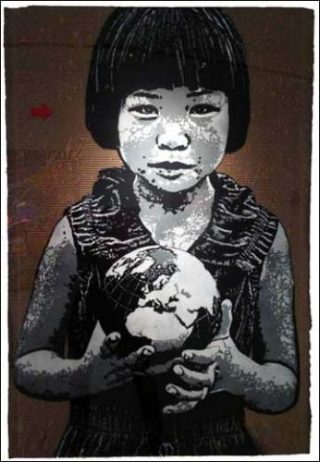 Jean-François Perroy, plus connu sous le pseudonyme Jef Aérosol, est né à Nantes en 1957. Artiste pochoiriste français, il est issu de la première vague de street art (art urbain) des années 1980. Il peint son premier pochoir à Tours en 1982. Jef Aérosol crée souvent des portraits de personnalités comme Elvis Presley, Gandhi, John Lennon, Jimmy Hendrix, Jean-Michel Basquiat ou encore Amalia Rodrigues. Il consacre cependant une part importante de son travail aux anonymes de la rue: musiciens, passants, mendiants, enfants dont il peint les silhouettes grandeur nature, en noir et blanc, toujours soulignées de sa fameuse et mystérieuse flèche rouge, seconde signature et marque de fabrique de l’artiste.