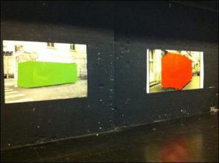 Dans ses coatted drawings, il réussit à faire surgir l’abstraction d’une image photographique ancrée dans la réalité la plus brute. Dans le même geste, il confère une plasticité minimale à ces grands aplats apposés sur des volumes de forme géométrique, tout en déplaçant l’espace même de l’abstraction. La couleur est le principe qui gouverne la vision, elle envahit le réel comme le langage plastique. Sorte de contrepèterie plastique qui tord le sens de l’image ou du matériau par le perfectionnisme d’une lecture radicale. Pourtant toute trivialité est écartée de ces assemblages, car le rendu formel que l’artiste donne à voir à travers ses objets, sculptures, peintures, photographies ou sérigraphies est finalement très éloigné de leur origine. La terminologie formelle en usage devient ici instantanément obsolète car les surfaces sculpturales démontrent d’une appartenance à la peinture, tandis que la peinture s’immisce dans le volume, que les «dessins» ont autant à voir avec la peinture par leur surface qu’au collage par l’adjonction de bandes colorées, et, enfin, avec la photographie par le fond.