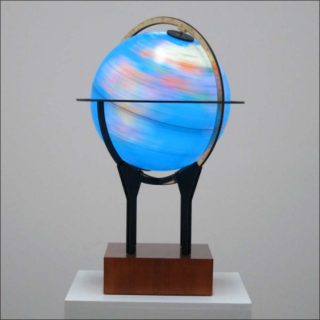 Les lignes, chez l’artiste franco-algérien Fayçal Baghriche, sont brouillées, notamment celles qui séparent les pays et renforcent les identités nationales. La sculpture intitulée Souvenir est un globe terrestre lumineux lancé dans une si rapide rotation sur lui-même que l’on ne discerne plus aucun repère géographique, ni pays, ni continent, ni océan. Ainsi s’ouvre la possibilité d’imaginer de nouvelles lignes de démarcation, au-delà des entités nationales.
