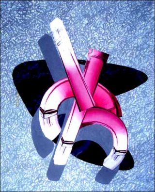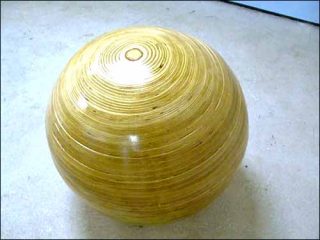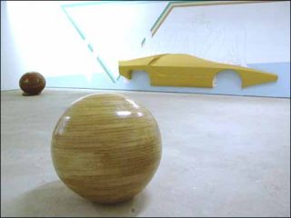 De Lili Reynaud : les Objet d’Intérieur pour la Floride et Objet d’Intérieur pour l’Arizona, deux sphères en couches de contreplaqué, semblables mais différentes, home made oblige.