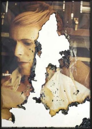 — Douglas Gordon, Self-portrait of you + me (David Bowie 03), 2010. Burnt photograph, mirror. 141,3 x 100,5 x 5 cm