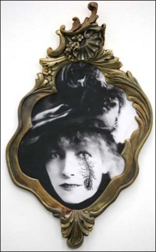 — Francesco Vezzoli, La Voyante (Un portrait de Sarah Bernhardt), 2011. Inkjet print on canvas, metallic embroidery, artist’s frame. 60 x 56 cm