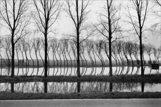 Réflexions au bord d’un canal (1994) présente un beau cadrage d’arbres droits alternant avec des arbres courbés et les réflexions du soleil sur l’eau du canal.