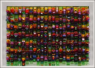 Lionel Estève. J’en montre trois. Chacun utilise un papier différent. Ce sont des films en celluloïd. Ceux qui sont utilisés comme filtre sur les projecteurs. J’aime leur matière et leurs effets.  Encore une fois, il y est question de vision. Je balaie le spectre visuel qui embrasse la vue globale jusqu’aux détails. Tous ces papiers découpés, montés dans un cadre de verre m’évoquent une fleur qui s’ouvrirait. Non, ça tu couperas pour l’article… Comment dire… c’est trop naïf comme observation. Mais c’est vrai que je suis inspiré par cette image. Cette ouverture, cette floraison est de l’ordre de l’abandon. Le visuel devient olfactif. Si tu veux c’est comme un cerisier en fleurs. En y pensant, en le voyant son odeur devient palpable.