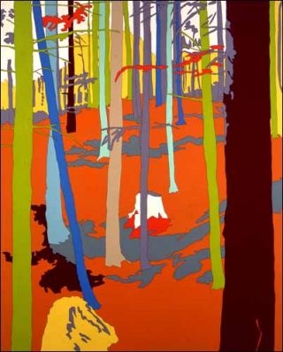 Des Nabis en passant par Mondrian, et jusqu’aux récents Cyprès de Jean-Marc Bustamante, la figuration de troncs d’arbres est constamment présente dans les arts plastiques, sans doute parce que ce sujet permet de concilier exigence formelle et figuration. Lisa Ruyter actuellement présentée à la galerie Thaddeus Ropac avec Can’t See the Forest for the Trees prolonge encore cette lignée, sous une forme très différente cependant. Mais on sent très bien, en promenant le regard dans ces forêts aux couleurs acidulées que l’étude de l’espace pictural et ses possibles effets reste au cœur de ses préoccupations.