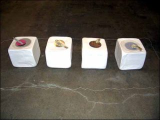 Métaphore du danger du soleil? La question reste ouverte! Ce tout jeune artiste avouait cette année, à l’occasion de la Biennale des Jeunes Créateurs d’Europe et de la Méditerranée, apprécier dans ses créations les gestes qui sacrifient. Il tire parfois des coups de feu sur ses toiles…
