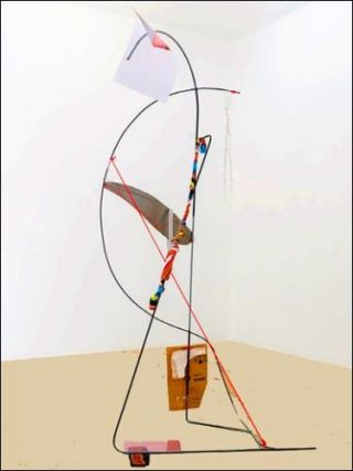 Et c’est peut-être ainsi qu’il faut aborder l’exposition «L’œuf et les sandales» qui, selon les mots mêmes de l’artiste, est «comme une peinture éclatée et ouverte dans l’espace, incarnée par des volumes et des surfaces, peuplée de formes aussi bien anthropomorphiques qu’abstraites, essayant de préserver la perméabilité et les glissements entre ces catégories formelles et psychologiques.».