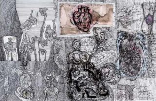 L’Å“uvre de Peter Kapeller est le témoignage déchirant d’un homme qui est intimement, viscéralement convaincu que l’art le sauve. Et, pour que ce processus soit complet, il nous prend à témoin de cet «œuvre au noir». Car, comme l’écrit la critique d’art Claire Margat, «seul un désir inextinguible de chroniquer cette lutte pour la survie, seul l’effort tenace d’en donner un aperçu sous la forme opaque de feuilles de papier noircies à l’encre sur lesquelles surgissent çà et là , comme pour donner un visage au néant qui les environne, des fragments de discours ou des figures amputées, le fait tenir: parce qu’il parvient malgré tout à tenir le journal de bord de ce naufrage permanent.»