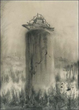 — East Wind, 2008. Fusain sur papier. 70 x 50 cm